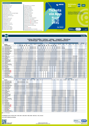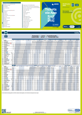 Alle gedruckten Fahrplanmedien und die PDF-Dateien für Minifahrpläne und Gesamtfahrplan bilden den regulären Jahresfahrplan ab. Aktuelle PDF-Dateien mit Fahrplanänderungen sind über die MVV-Auskunft unter dem Menüpunkt „Fahrplanbuch“ als einzelne PDF-Dateien abrufbar.Nicht aufgeführte Linien stehen mit Stand Dezember 2026 als PDF-Online-Version in unserer MVV-Auskunft zur Verfügung. Den Gesamtfahrplan 2026 können Sie sich hier als PDF-Datei herunterladen.