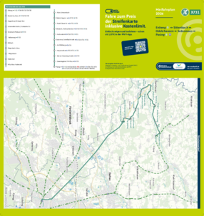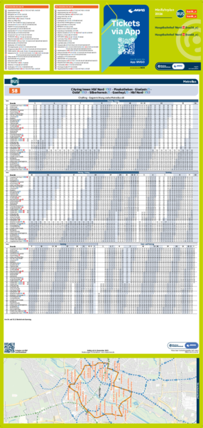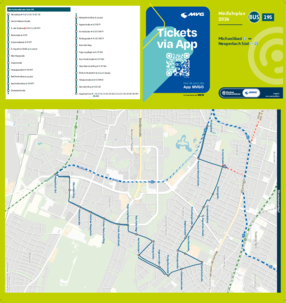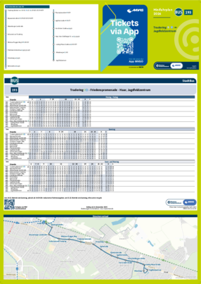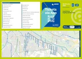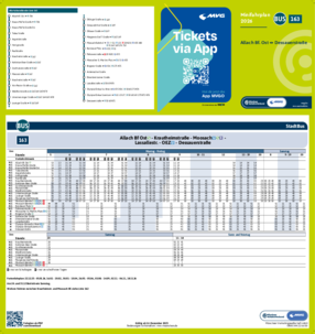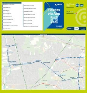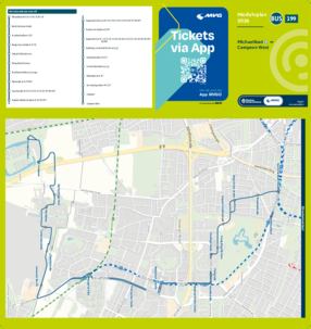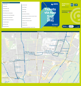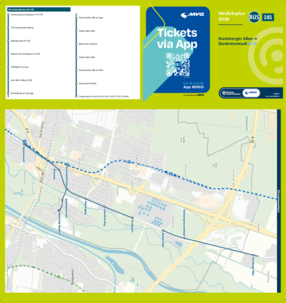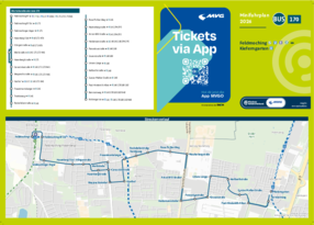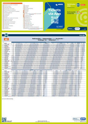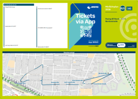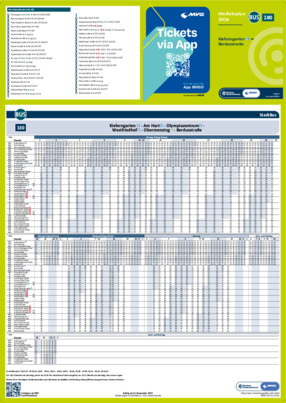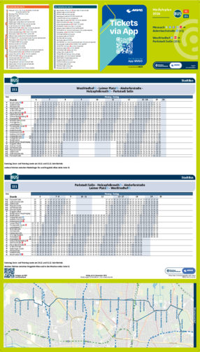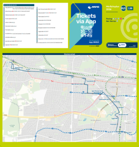 Wichtiger Hinweis: In allen Minifahrplänen wird der Fahrplan der jeweiligen Linie zum Fahrplanwechsel dargestellt. Dieser erfolgt stets Anfang Dezember eines Jahres. Fahrpläne können sich jedoch während eines Jahres ändern, dal beispielsweise Baumaßnahmen den Linienweg beeinflussen. Geänderte Fahrpläne finden Sie unter dem Menüpunkt "Fahrplanbuch" zum Download.