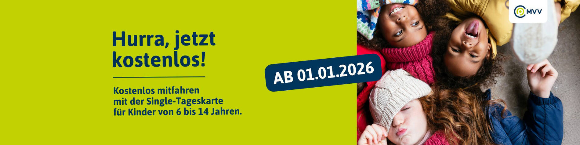 Die Kinder-Tageskarte gilt für ein Kind zwischen 6 und 14 Jahren. Sie erlaubt beliebig viele Fahrten im gesamten MVV-Gebiet, dem Geltungsbereich Zone M - 12.